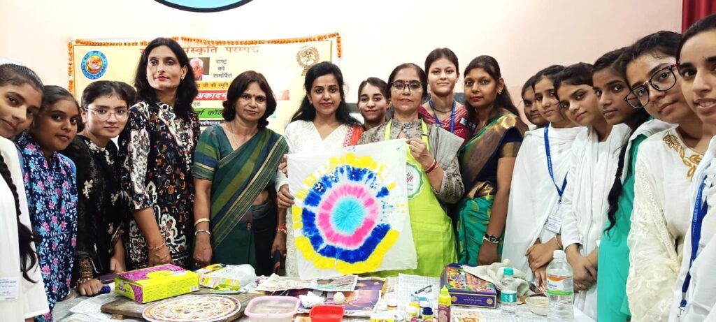 कार्यक्रम का शुभारंभ कॉलेज की प्राचार्य प्रोफेसर चारु मेहरोत्रा के सर्वग्राही एवं ज्ञानवर्धक संबोधन से हुआ। उन्होंने कहा कि भारतीय संस्कृति में बांधनी तकनीक (टाई एंड डाई) का प्रयोग कपड़ों की सजावट के लिए प्राचीन काल से होता आ रहा है। इसी तरह गुजरात के कच्छ क्षेत्र की पारंपरिक कला लिप्पन आर्ट दीवार सज्जा का एक अनोखा उदाहरण है, जिसमें मिट्टी और छोटे दर्पणों से अद्भुत पैटर्न बनाए जाते हैं।
