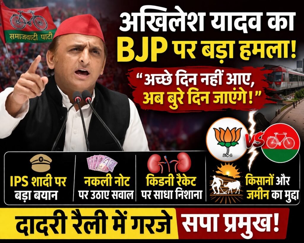 अखिलेश यादव ने दादरी में आयोजित ‘समाजवादी समानता भाईचारा रैली’ के दौरान भाजपा सरकार पर जोरदार हमला बोला। उन्होंने कहा कि “अच्छे दिन अभी तक नहीं आए, लेकिन अब बुरे दिन जाने वाले हैं।”