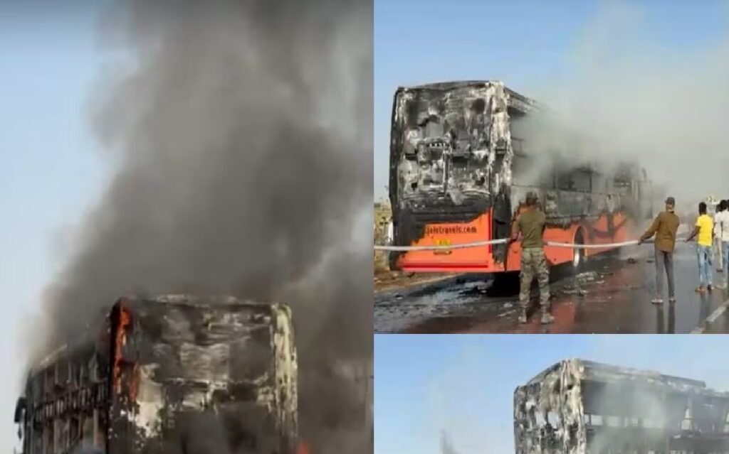 दोपहर साढ़े तीन बजे बस में आग लगी। चंद मिनटों में लपटों ने पूरी बस को घेर लिया।