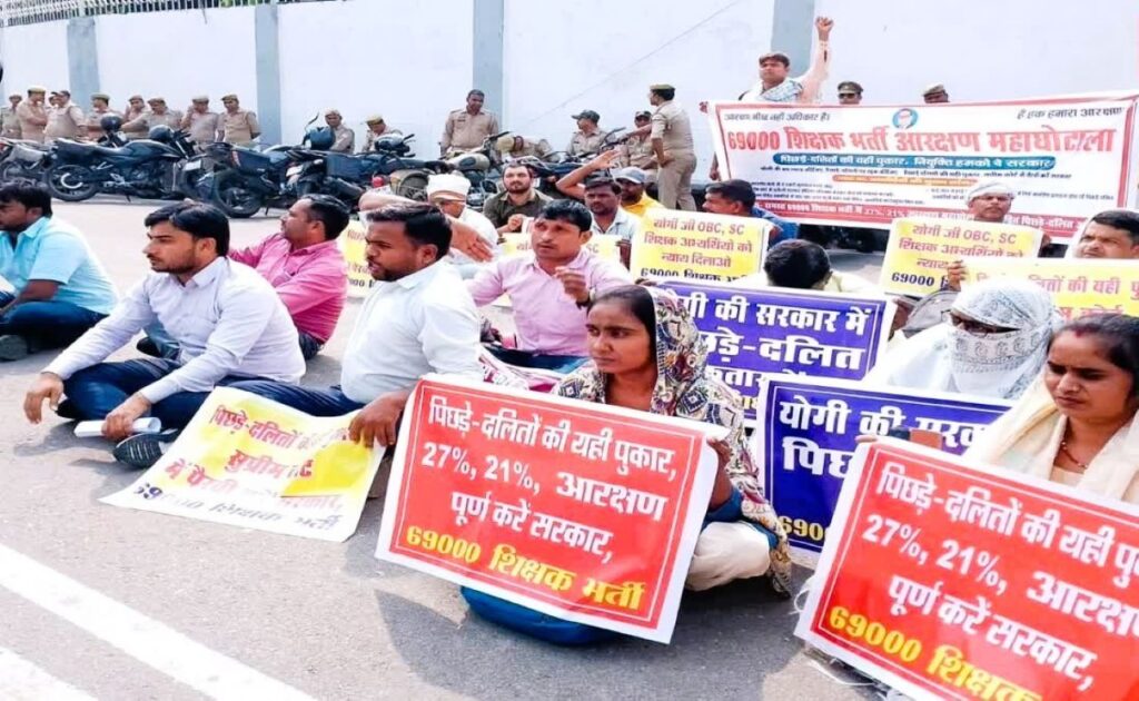 लखनऊ में 69000 शिक्षक भर्ती के अभ्यर्थियों ने शनिवार को बेसिक शिक्षा मंत्री संदीप सिंह के आवास का घेराव किया। प्रदर्शनकारियों ने नारे लगाए—